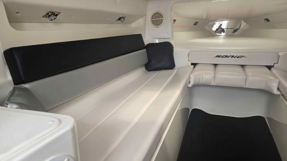 Powered by twin Mercruiser 500s with low hours, this one-owner boat has been exceptionally well maintained and looks fantastic for its age. Built for speed and comfort, this Sonic delivers a top speed around 80 mph a true thrill on the water.