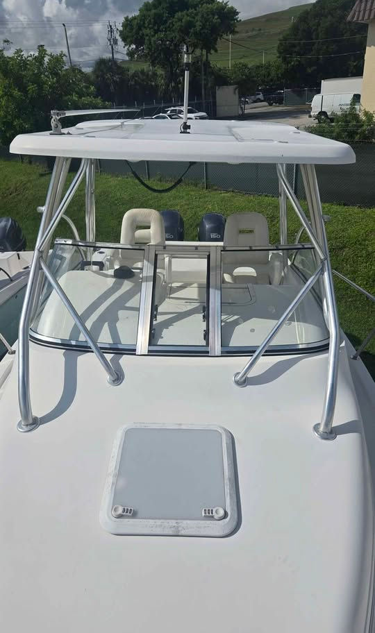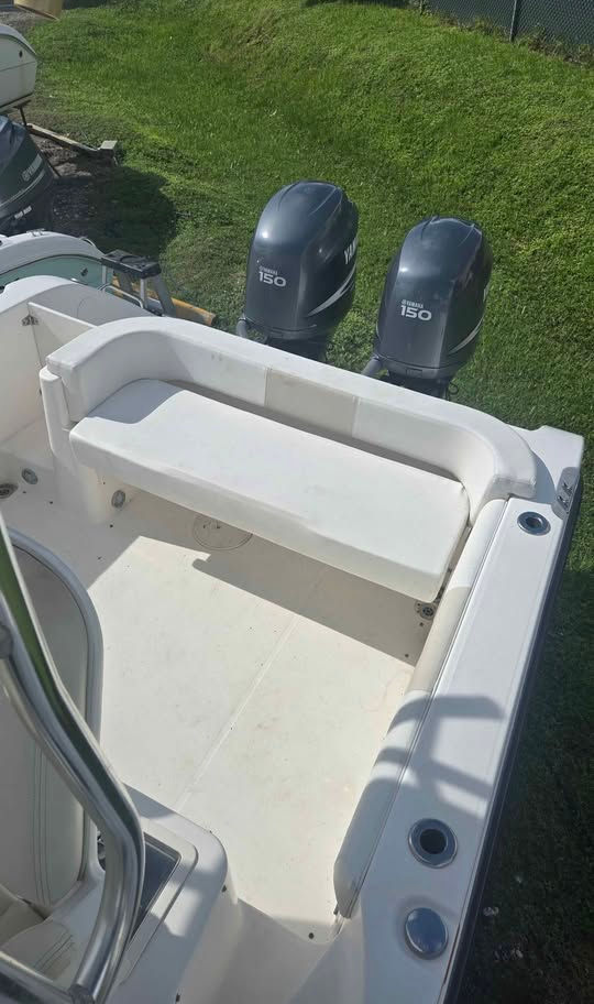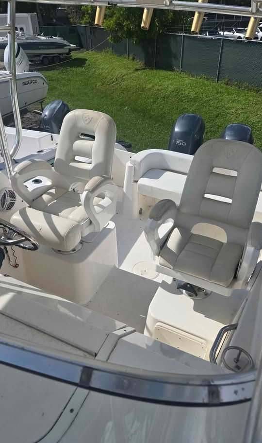 Powered by twin Yamaha 150s, this Century 24 Walkaround is a fully loaded and well-maintained vessel built for comfort and capability.
